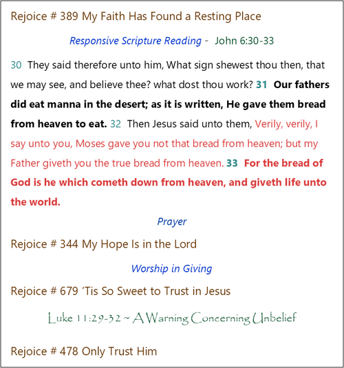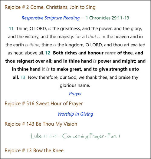 Morning Worship Order of Service