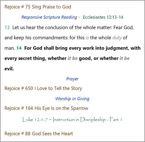 Afternoon Worship Order of Service
