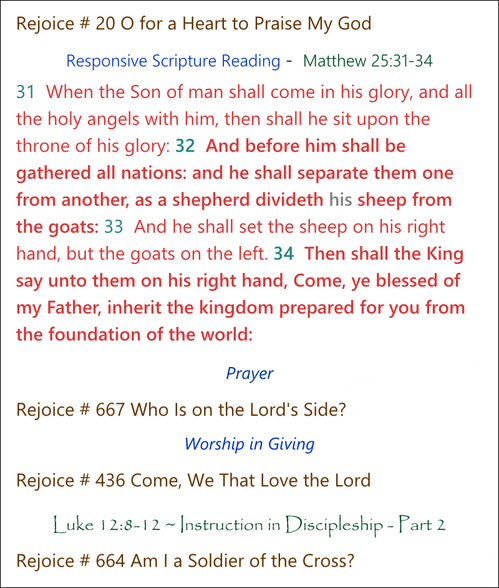 34 Then shall the King say unto them on his right hand, Come, ye blessed of my Father, inherit the kingdom prepared for you from the foundation of the world: